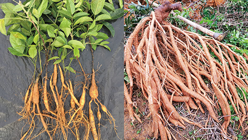 粵森優質牛大力種苗成熟后現場開挖結薯效果生長快、結薯多、產量高、藥效有效成分高